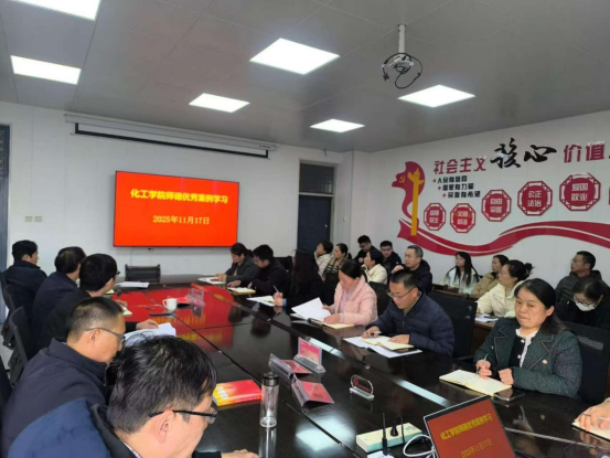 为深入学习贯彻习近平新时代中国特色社会主义思想,落实立德树人根本任务,持续加强师德师风建设,以实际行动贯彻落实党的二十届四中全会精神,化工与环境工程学院于2025年11月17日下午在学院会议室开展优秀师德学习活动。